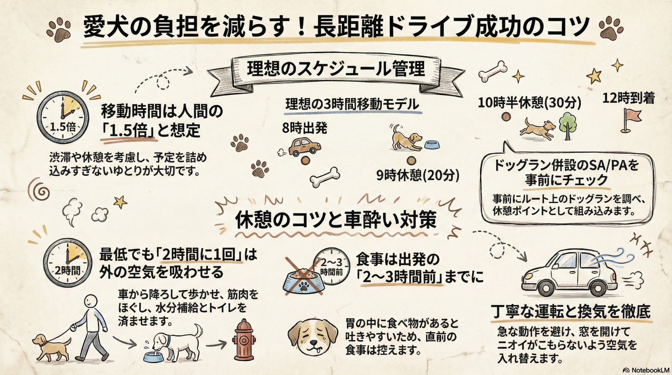 1. ペットとの車旅は「時間にゆとり」が鉄則!理想のスケジュール例